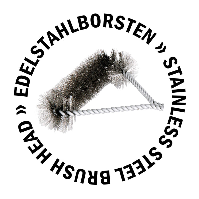 - Hochwertige Edelstahlborsten, zusätzlich seitlich am Bürstenkopf